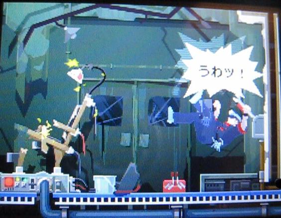 係官はスパナを手に取ると発電装置の修理を行います。これで、部屋に光が戻すコトができます。