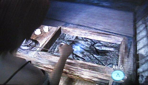 囲炉裏の灰の中からアイテムを入手しましょう。