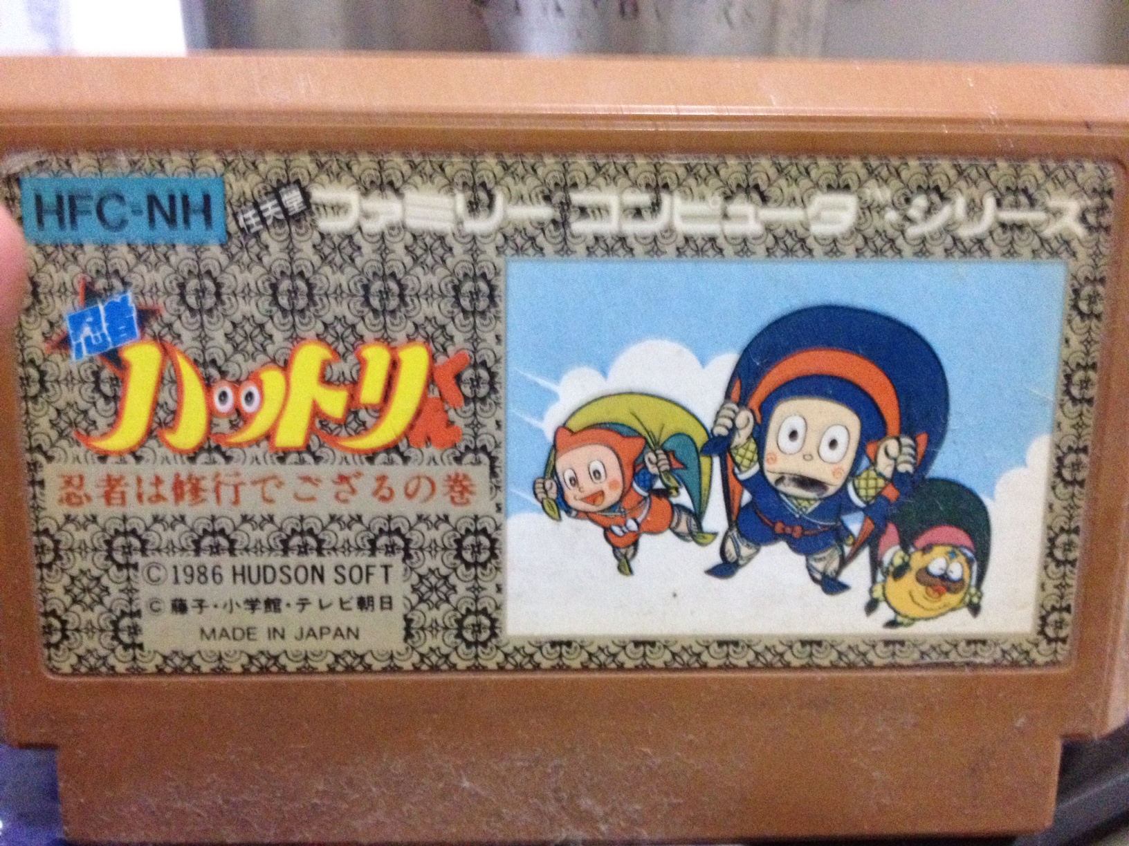 さて、本日のファミカセは1986年にハドソンから発売されたアクションゲームである「忍者ハットリくん」です。副題は「忍者は修行でござるの巻」です。