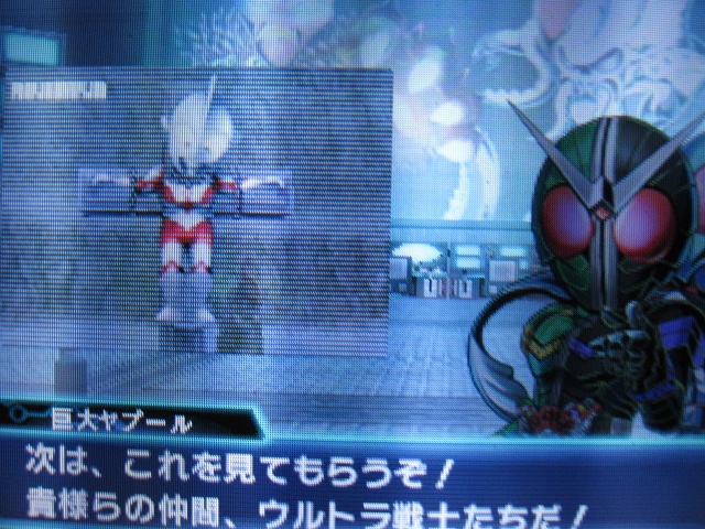 黒幕たちはご丁寧に仮面ライダー1号とウルトラ兄弟が囚われの身であることを教えてくれます。写真だと仮面ライダー1号は見づらいかもしれません。すいません…。