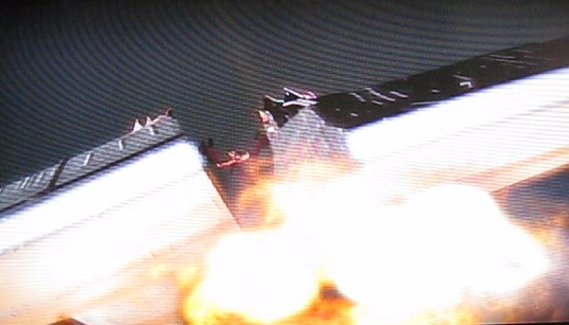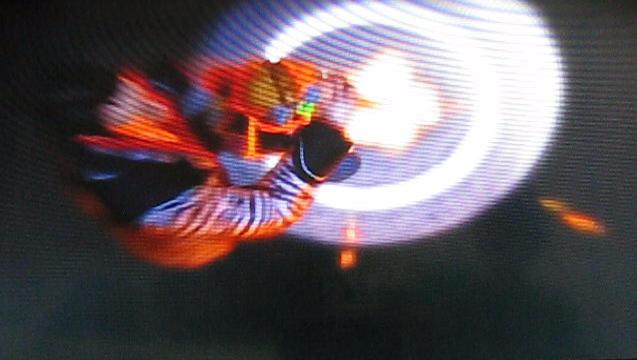 さて、ジョージィーとの戦いですが、第一形態では変なUFOに乗って体当たりをしかけてきたり、爆弾を投げてきたりします。なのでこちらもチェーンソーブラスターで応戦します。接近戦はちと分が悪いです。チョロチョロと動き回るので射撃も難しいんですけどね。