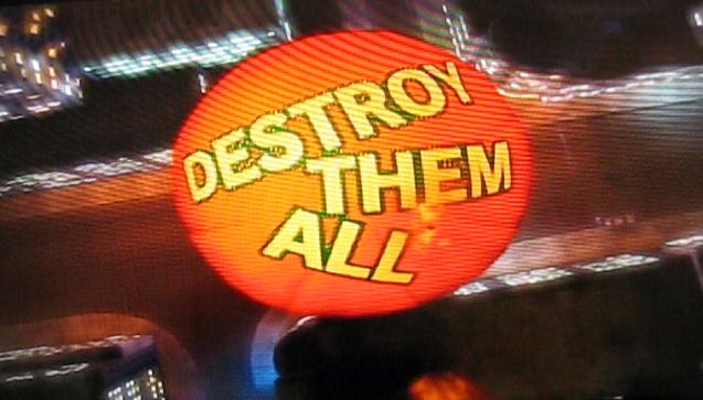 そのパラシュートには「DESTROY THEM ALL」の文字が。えーっと、直訳で「全破壊」でOK?