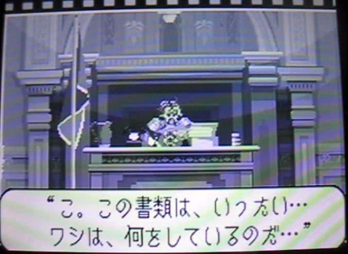 ホウムダイジン:「執行指令書にサインするのは、法務大臣のシゴトです。ワシのココロが、そのシゴトに必至に抵抗したのだろう…。そのときは、そう思った…。しかし…その、次の日。思い当たったのですよ。カバネラ警部の報告…<<アヤツル者>>の存在に。ワシは、法務大臣として…認めるコトができなかった。」