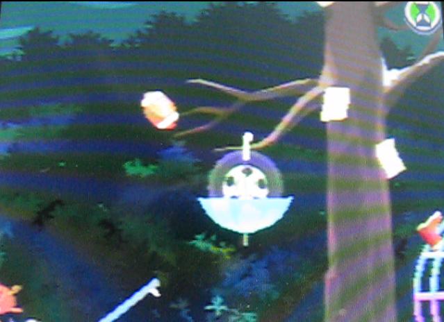 <<ミノくん>>に潰された公園のオトコを助けるため、<<ミノくん>>と木の枝に引っかかっているラクビーボールをトリカエることにしましょう。
