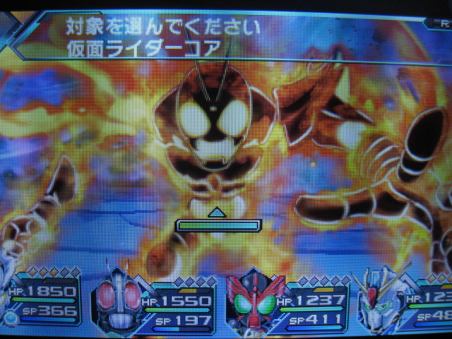 仮面ライダーコアは…まぁ、普通のボスですね。特別強くはないです。ただ、デビルガンダムより素早く先手をとられるため、素早さを下げて回復の先手をうてるようにしておきたいです。