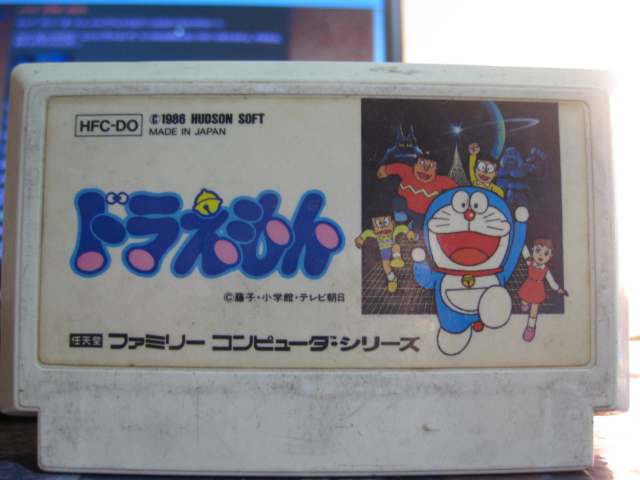 本日のファミカセは1986年12月にハドソンから発売されたキャラクターゲームである「ドラえもん」です。クリスマス商戦に向けて発売され、115万本を売り上げた大ヒットゲームです。有名なゲームですのでご存知の方も多いのではないでしょうか。