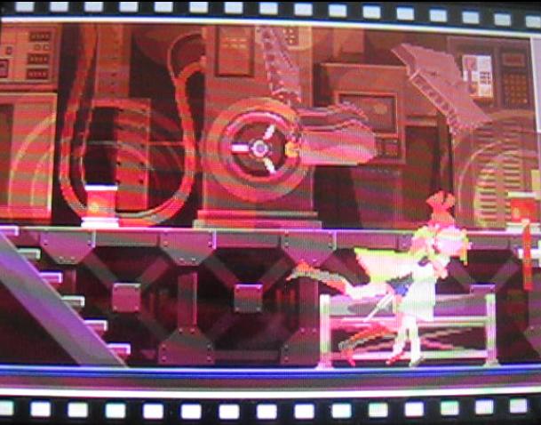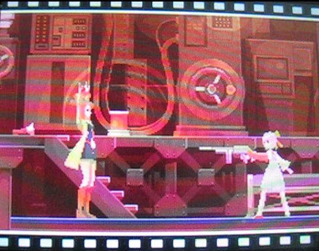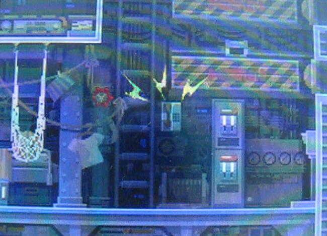 リンネ:「お互いサッパリわからないというカンジね。…あれから、あたしたちはアイツの足取りを追ったの。カバネラさんが"弾丸"にしかけた<<電波発信機>>を追って…街ハズレの小さなミナトから、アイツはクルーザーで海に出たわ。あたしたちは、そのクルーザーにかくれて乗り込んで…ジョードさんといっしょに、浮上した潜水艦に潜入したの。…やがて、潜水艦は海の中にもぐって…あたしとジョードさんは手分けすることにしたの。ジョードさんは"デンワ線"あたしは、カノンを探して…この機関室に逃げ込んでいたあの子を見つけたの。」