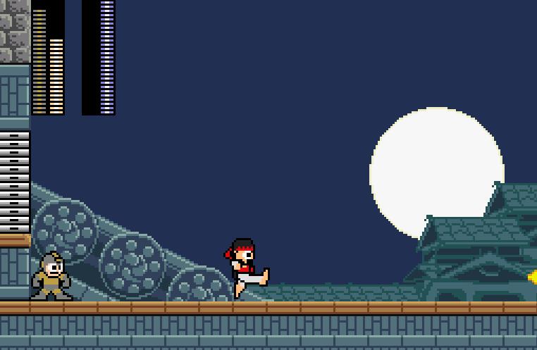 リュウステージなのですが、満月をバックに何かの建物の中をひたすら進むステージとなっています。
