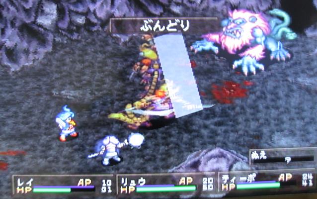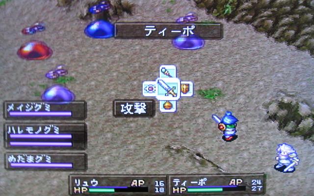 パーティーがリュウとティーポだけですので、まずは序盤のレベル上げを行います。