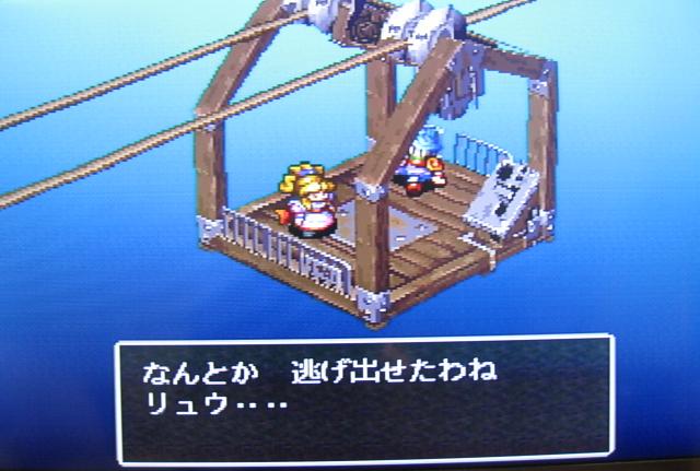 サントが追ってくるのですが、リフトに乗った後、山から飛び降りてようやく追っ手をまくことが出来ます。ここまでは攫われる→逃亡→攫われる→逃亡の繰り返しだなぁ。