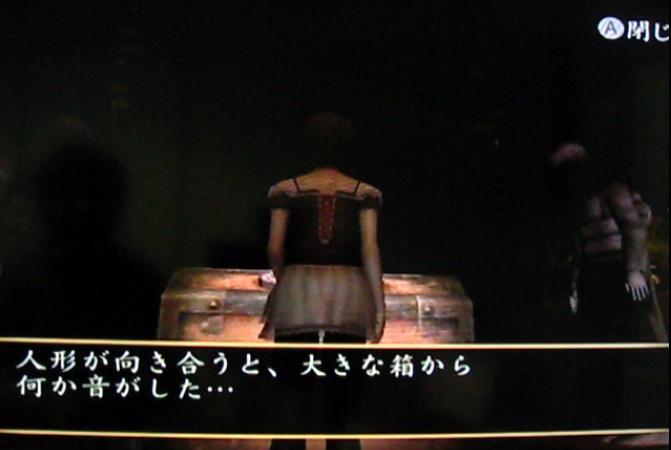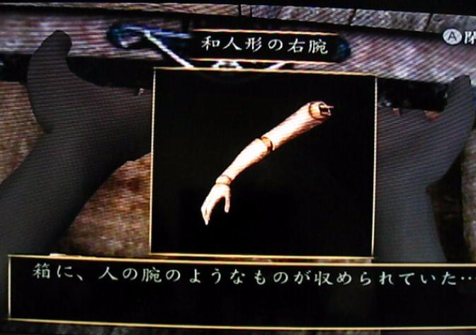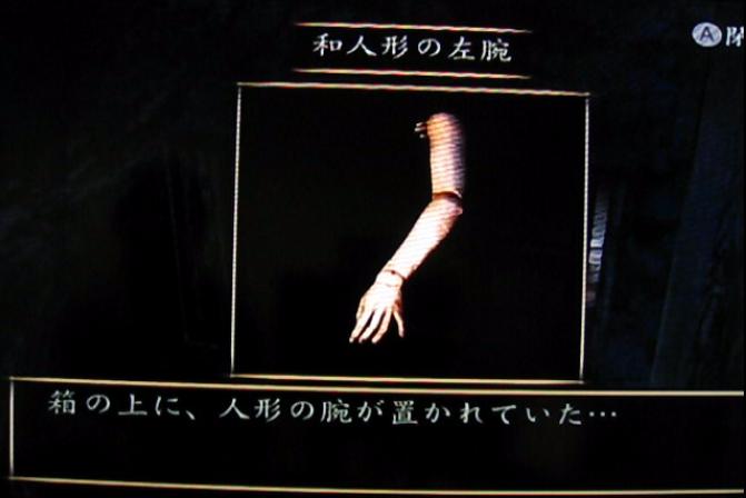 さて、この「飛び降りた女」をさっさと始末して、次のパーツを探しに行きます。人形の間へと向かうT字路を人形の間とは逆の方へ進み、窓のある納戸へと向かいます。そこで、和人形の右腕を回収します。