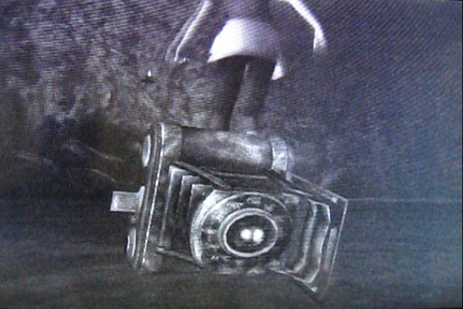 さて、2階には新たなフィルムリールも落ちているので回収しておきます。ここにはもう用はないので、1階に戻ろうと階段を下りている途中でイベントです。