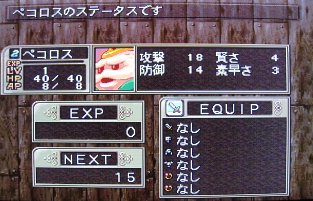 リュウ:Lv18 ニーナ:Lv16 モモ:Lv15 ペコロス:Lv2