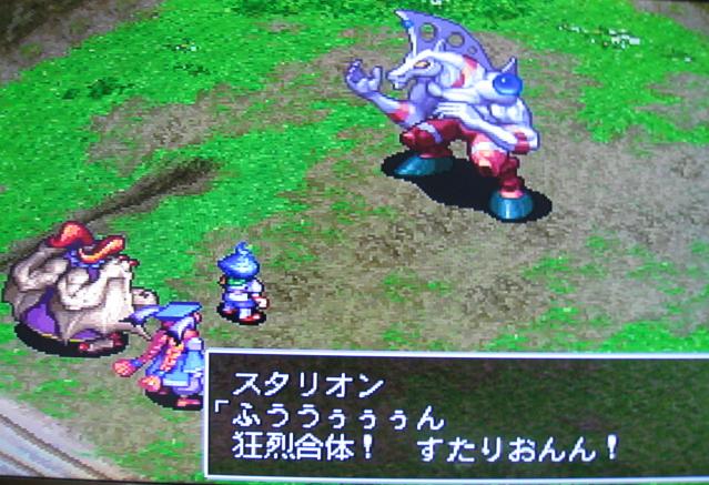 そのままガーランドは仲間になってくれます。そしてついにバリオとサントとの戦闘に突入です。バリオとサントは合体(フュージョン?)をして…。