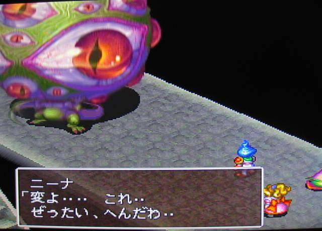 目玉のオバケ、ゲイザーの登場です。見事な見掛け倒しであまり強くないです。こいつも盲目状態にして倒すと経験値ボーナスが増えます。目玉の敵にはとりあえず「目つぶし」をしておくというのはこのゲームの基本ですね。