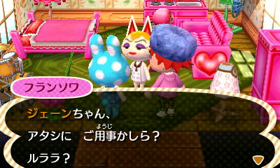 今日は、ジェーン(ネコ:オトナ)にフランソワ(ウサギ:オトナ)を家まで連れてきて欲しいと頼まれました。なんでも彼女に用があるとの事。さっそく呼びにいきましょう。