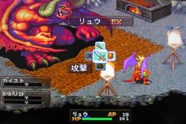 …とまぁ、そんな事をツッコんでも仕方がないので、さっそくバトルです。リュウ1人で戦う事になるので、ここは竜変身に頼ることにします。今回使ったのは物理攻撃重視のパワーのジーンです。あやうくAPがきれるところでしたがなんとか撃退しました。やったね!