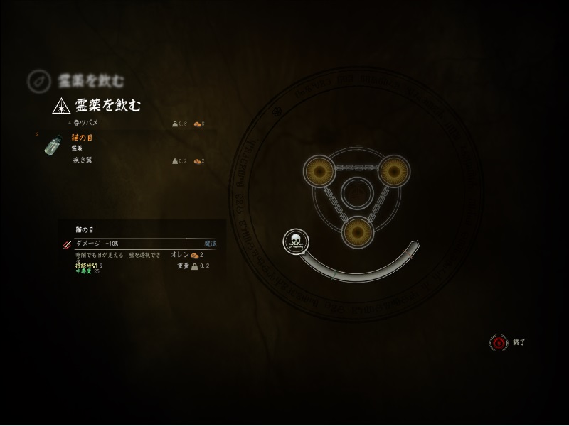 地下通路は暗いので、猫の目という秘薬を飲んでおきます。