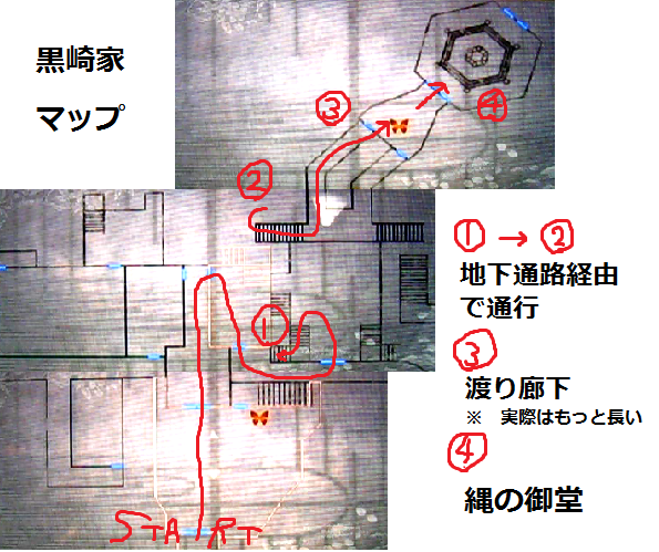 さて、黒澤家を進んでいきます。こちらがマップです。