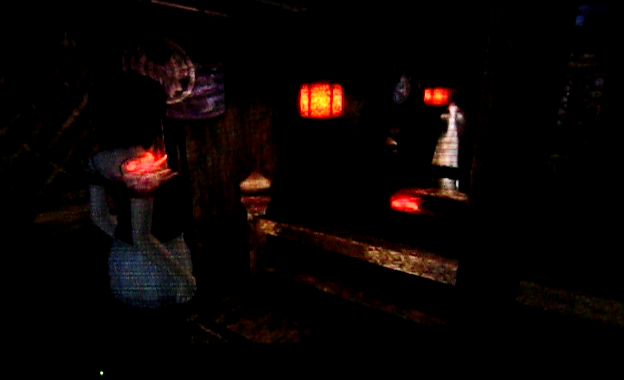 この先の④縄の御堂に行くためには、2人で左右のドアの正面に立って開錠する仕掛けを動かさなければいけないのですが、ここで紗重の霊が手伝ってくれます。