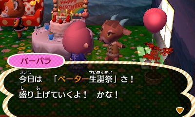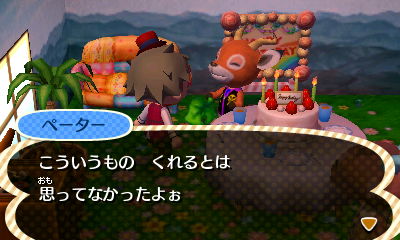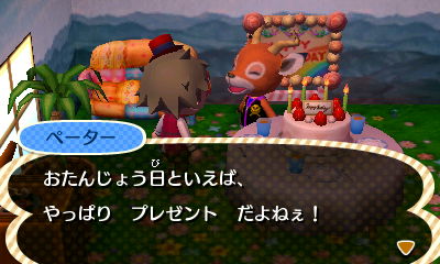 この日の主役ペーターに話しかけると、結構ストレートにプレゼントを要求してきます。ペーターに限った話ではなくみんなそうなんだけどね。