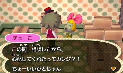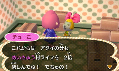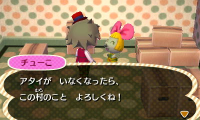 ゲーム開始からずっとめいきゅう村で一緒だったチューこ(ネズミ:げんき)が引っ越しをすることになりました。