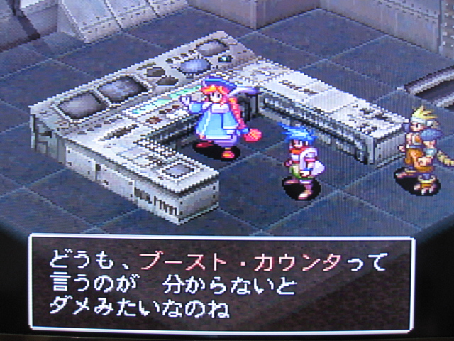 ブリッジから下の階にブースト数値をチェックする機械があります。ブースト開始からまず下に降りて、機械を見ると約1秒ずつカウントが増えているのが分かるので、そこからブリッジに戻り、モモに話しかけるタイミングでジャスト100にします。