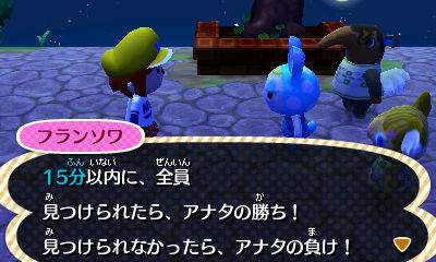 かくれんぼはランダムで発生するイベントで、15分以内に村のどこかに隠れた3人の住人を見つけるというシンプルなものです。