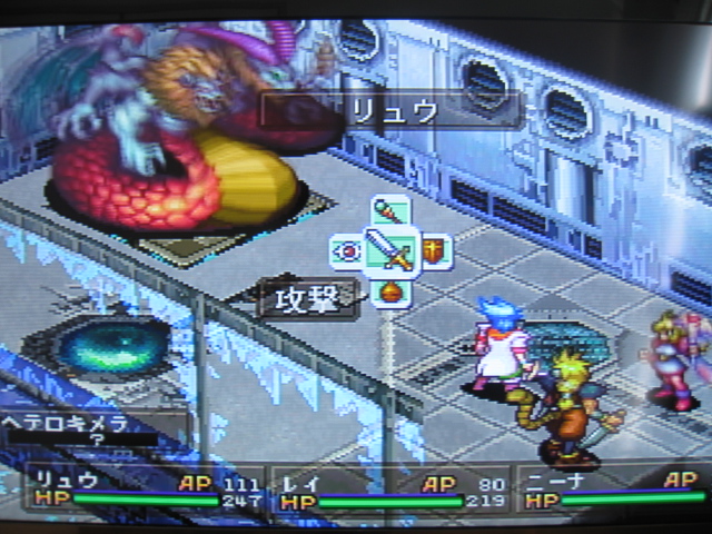 ここで、ヘルライダーとの戦闘になります。リュウ1人での戦闘のせいか、あまり強くないです。氷属性の攻撃が多いので、ひょうがのうでわを装備していると楽です。