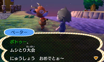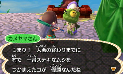 ゲームを立ち上げると、ムシとり大会のアナウンスが流れます。