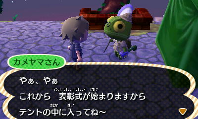 表彰式の後、住人に話しかけるとお祝いの言葉をもらえます。