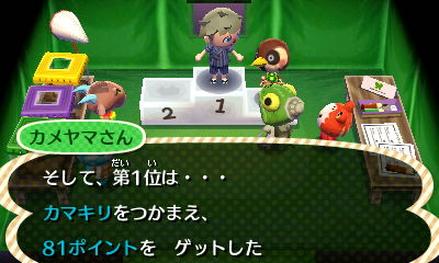 また、80点以上の点数で記録を更新した場合は限定の昆虫家具がもらえます。