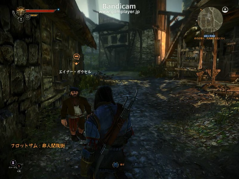 フロットサムへ上陸したゲラルト一行。イオルヴェスの追撃を振り切り集落へとたどり着きました。前回情報を得た、ドワーフと吟遊詩人の処刑の現場へ行ってみようかと思います。