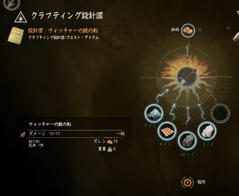 そこで、設計図:ウィッチャーの銀の剣を使ってクラフトしてもらえば終了です。