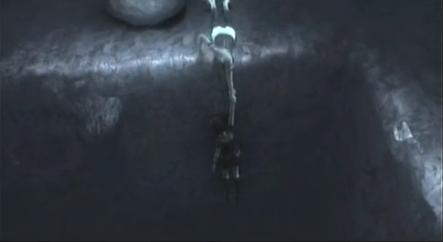 紗重が大穴の淵に立つ場面に切り替わります。ここまでくればもう安心。紗重は何もしてこないのでとどめの一撃を叩き込み試合終了です。
