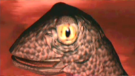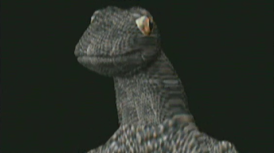 社長:「ウフフフフ…どうです?良くできているでしょう?ヒトが猿から進化して、いまの私たちがいる。でも、もしその進化の根幹が猿にではなく、トカゲなどのハ虫類にあったとしたら…。私たちの姿もおそらくこの様になるとは思いませんか?あるいはもう既に、この生物がどこかに存在しているとしたら、とても楽しいことだとは思いませんか?」