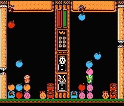 たまに落下してくるキャラクターに混じり、2種類の卵のかけらが降ってきます。これをうまく積む事でキャラクターを一度に大量に消すことができるほか、完成した卵からヨッシーを誕生させて高得点をゲットできるというわけです。対戦モードでは敵を攻撃する時に必須となります。