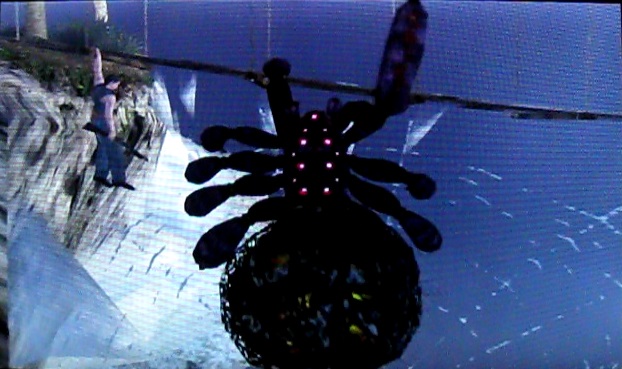 ここで巨大クモをマイクごと吊り橋から落とすという荒業をやってのけます。
