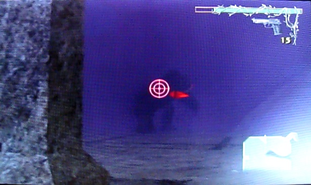 近距離武器は届きませんのでここは素直にハンドガンか猟銃を装備します。接近しすぎると足で蹴られたり、ガスで攻撃されるので、なるべく距離をとって攻撃をします。