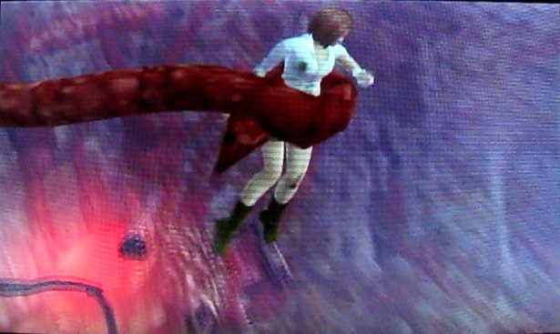 触手から放り出されるミシェルですが…