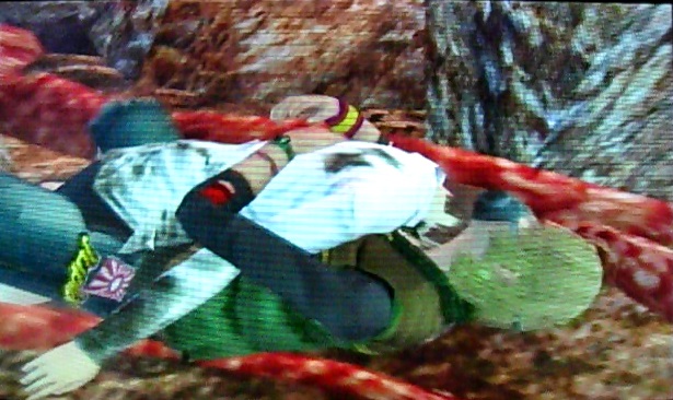 一応下敷きになった石像から脱出するところまでは頑張るんですが、そこで力尽きて後ろに倒れ込み後頭部を石像に強く打ち付けて死亡します。