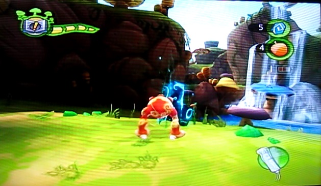 これはブルーメテオのかけらで、Wiiリモコンを振って蹴りを入れて壊すことで手持ちのブルーメテオの数を増やすことができます。