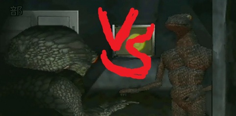 部屋の中では逃げ出したトカゲ男とスミレが死闘を演じていた。