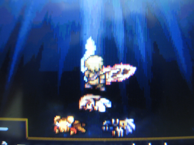 今度はオーラ吸収でパーティーだれか1人のHP、MPを根こそぎ持っていきます。連発はしてこないのでさっさと生き返らせて、MP回復させて戦線復帰させましょう。また強いプレッシャーをかけて、こちらの魔法効果を打ち消してきます。あと2~4連撃等でこちらのHPをじわりと削ってきます。