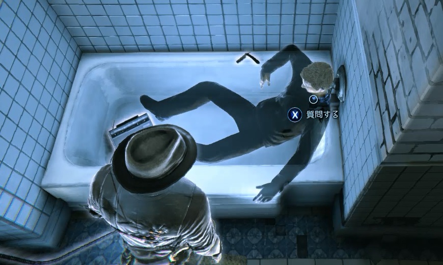 どうやらこの霊体はここのバスタブで亡くなった様子。ですがバスタブにはラジオ、浴槽にはカミソリが置いてあり死因がよくわかりません。