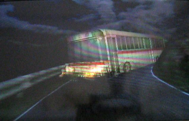突然、バスが暴走してきます。