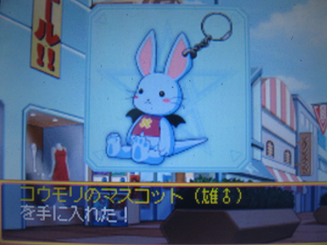 ねおん:「…コウモリ!今日の家庭科で作ったの。あまらせちゃもったいないし…アクジに1つあげる。ねえ、どこにつける?…仕方ないなあ。それじゃ、カバンにつけといてやるか。」