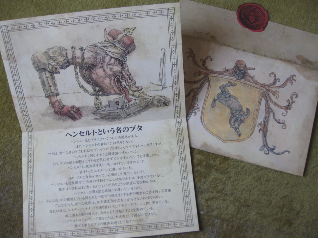 まずはこちらの便箋です。中にはコインと「ヘンセルトという名のブタ」という表題の手紙がありました。うーん、なんのこっちゃさっぱりわからんぞ。いずれわかるようになるんでしょうか。