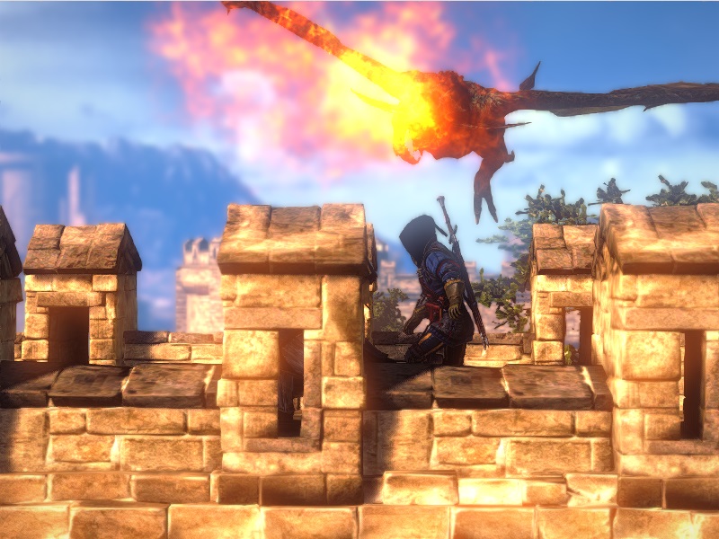 ここでようやくゲラルトを操作できるようになります。ブラックドラゴンの炎をかわしつつ、襲い掛かってくる守備兵を倒していきます。