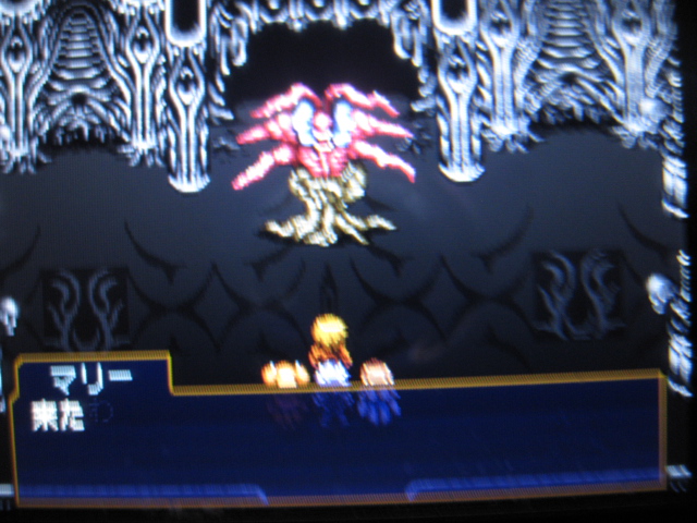 反面こちらの魔法はマリーのサバリス以外は効力がイマイチです。それでもディルはフレアデス、バゼライルを使うのがよいかと。幸いナイアラトテップも詠唱後に必ずサバリスを使ってくれるので、そのターンに敵の魔法をはね返すラミールを使って迎撃するのも有効です。マリーには早い立ち回りを求めるので、マイストの弓を装備させています。あとはエルダー兄貴とステビアのタコ殴りで倒せます。
